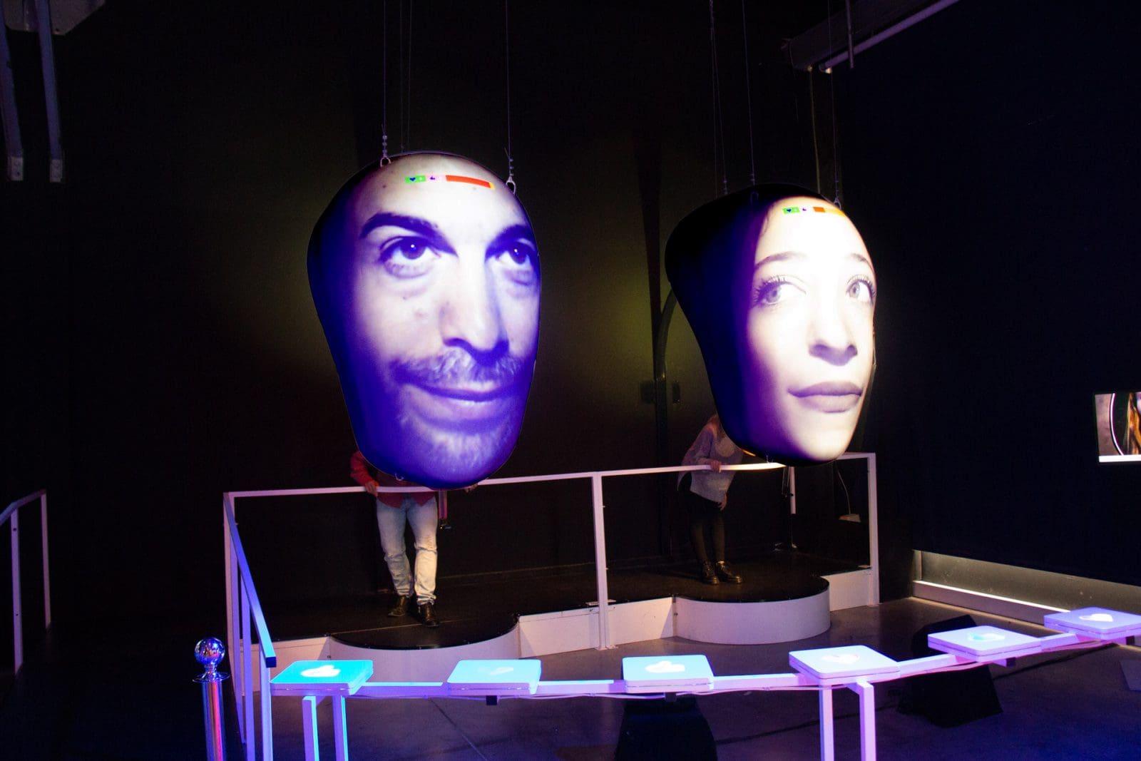 - Talk to Me — “The Power of the Voice”: Step behind a larger-than-life projected face and experience the pull of the digital stage. As you speak, a cascade of real time likes and hearts responds to your presence, creating a vivid and playful moment that invites reflection on visibility, affirmation, and the desire to be heard.